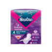 Contiene 8 toallas higiénicas con alas, fabricadas con una cubierta de tela ultra suave. Su diseño anatómico y largo proporciona una cobertura adicional y una absorción excelente durante toda la noche.