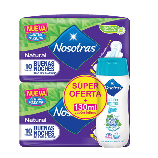 Oferta (Toalla Higienica Nosotras Buenas Noches x 10 Toallas + Jabon x 130 ml)