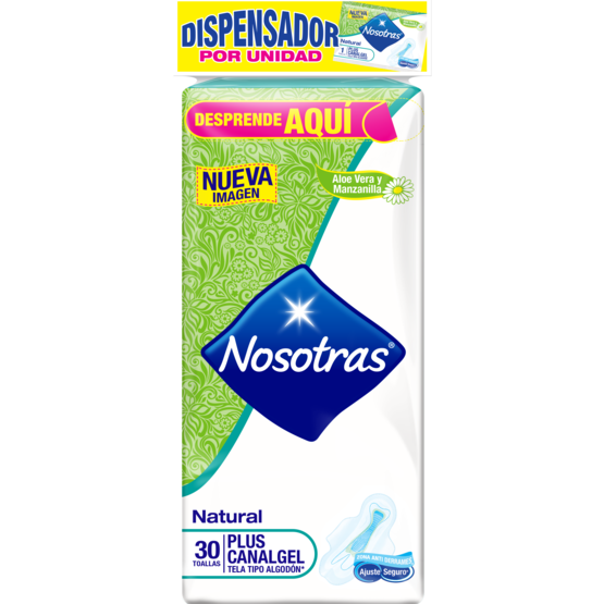 Toalla Higiénica Nosotras Plus Canal Gel Ajuste Seguro x 30 Toallas