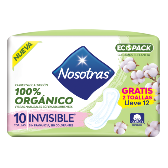 Toalla Higienica Nosotras Inivisible Organica x 10 Toallas + 2 Toallas