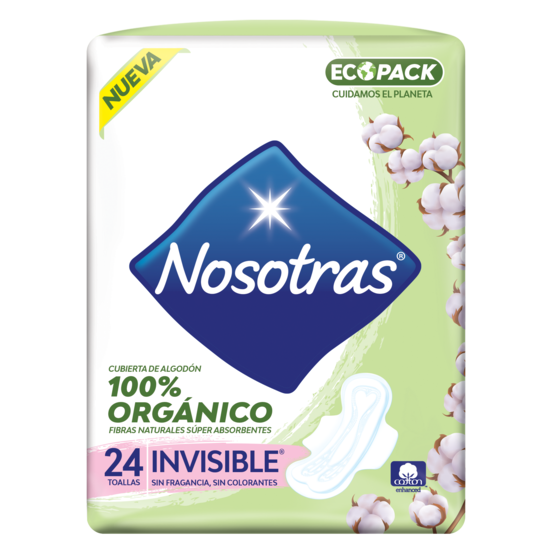 Toalla Higiénica Nosotras Invisible Orgánica x 24 Toallas