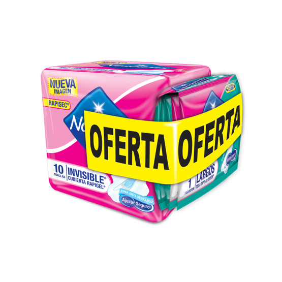 Toalla Higiénica Nosotras Invisible Rapigel x 10 Toallas + 5 Protectores Largos