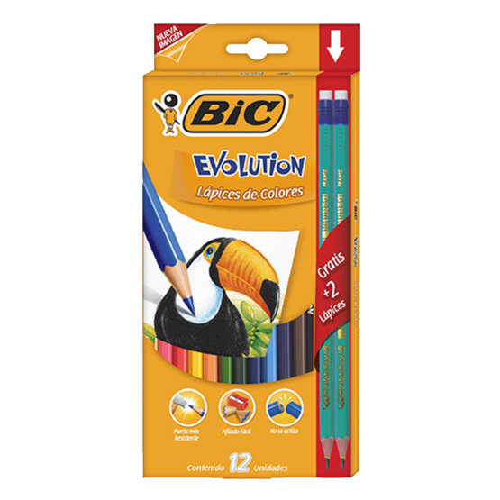 Colores Bic Evolution x 12 Colores + 2 Lápices